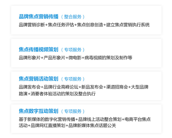 微信公眾號(hào)運(yùn)營(yíng) 新媒體營(yíng)銷策劃 流量整合營(yíng)銷 全網(wǎng)營(yíng)銷體系咨詢 其他營(yíng)銷